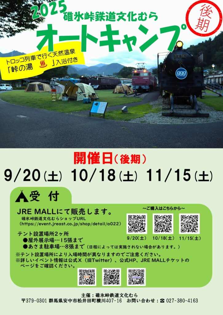 展示車両の周りでテントを張ってお泊まりできるキャンプイベントを開催します。詳細・お申込はJRE MALLからとなっておりますので、皆様のお申込をお待ちしております。