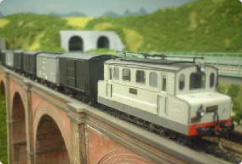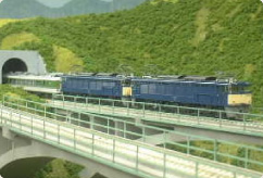資料館1階には、HOゲージの模型で精密に再現された碓氷峠の大型鉄道ジオラマを展示しています。下記の演出運転時刻表の時刻にになると、ムード満点の演出運転を行います。演出運転時以外はお客様のボタン操作により¥100にて運転することができます。