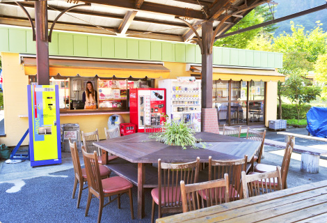 広場の展示館側にある売店では、軽食・各種お飲み物等を販売しております。