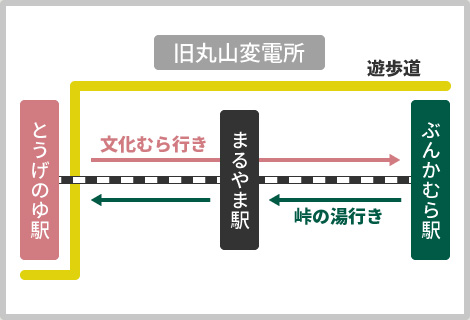 ※「まるやま駅」は峠の湯行きのみ停車します。峠の湯から文化むらへ向かう便は停車しませんのでご注意ください。
