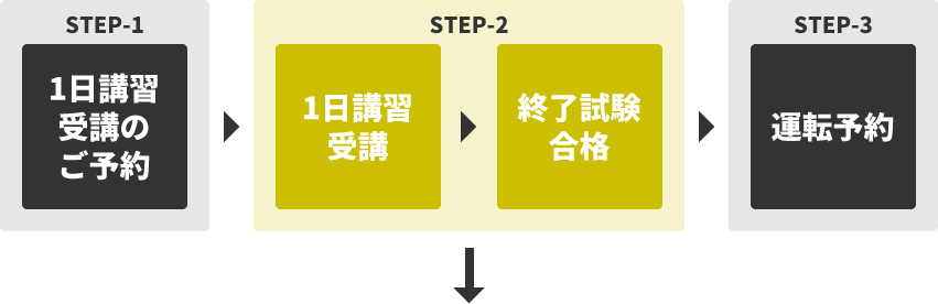 | 15:30 – 16:30 | 修了試験 修了証明書交付 諸説明 運転予約受付 |